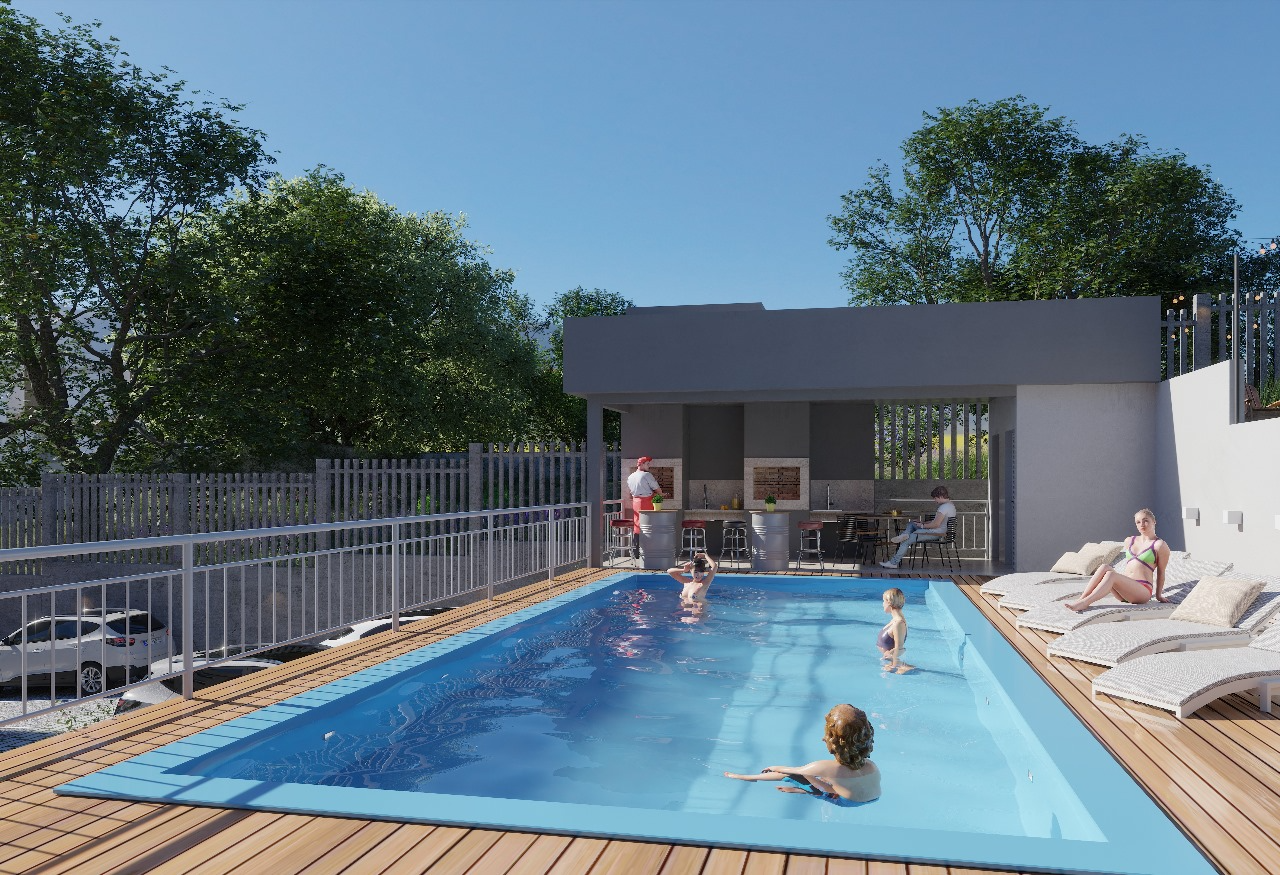 Apartamentos com dois quartos, sacada com churrasqueira, estrutura de club com salão de festas e piscina!