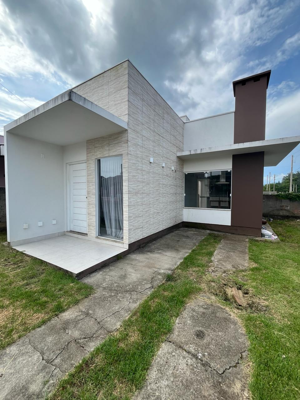 Casa de alvenaria com área de 58,89m², com design atual, possui 2 dormitórios, Sala de estar/jantar; Banheiro; Cozinha com churrasqueira e Lavanderia.